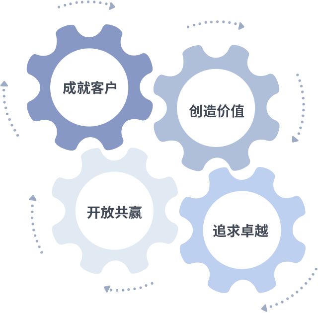 成就客户是一切决策的出发点,创造价值是衡量所有工作的标准,追求卓越是jbo竞博电竞做事做人的态度,开放共赢是jbo竞博电竞的格局也是最终的结果。价值观的齿轮环环相扣,推动着组织里的每个人不断向前。